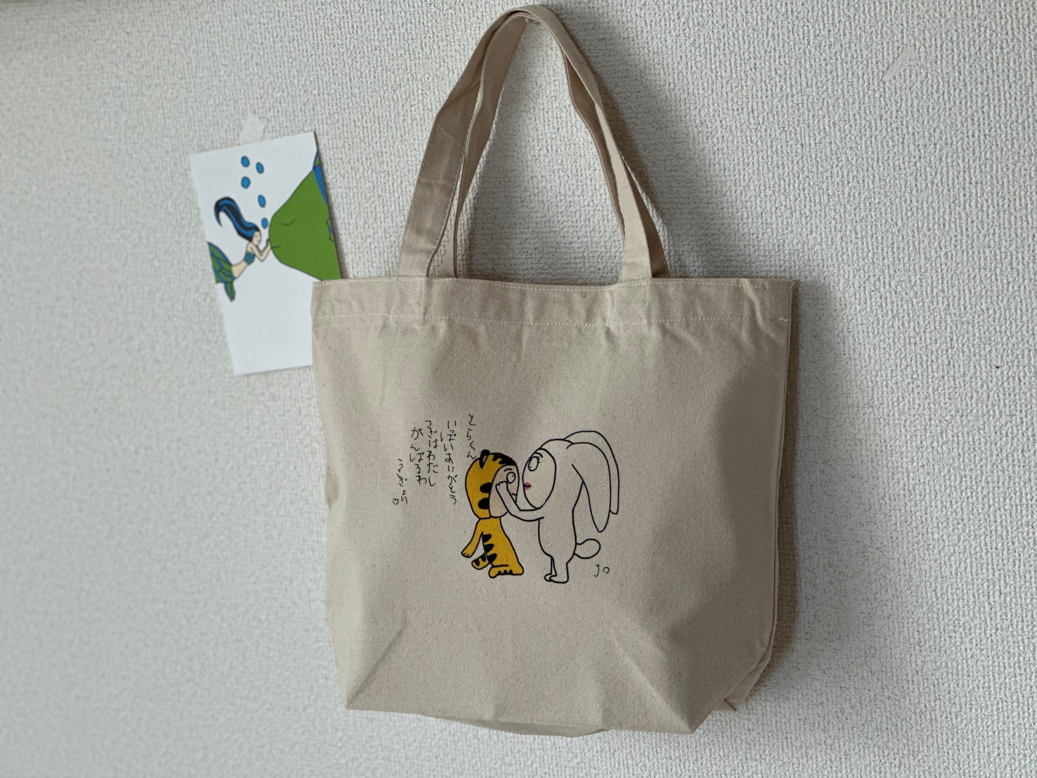 大人から子どもまで使えるかわいいトートバッグです